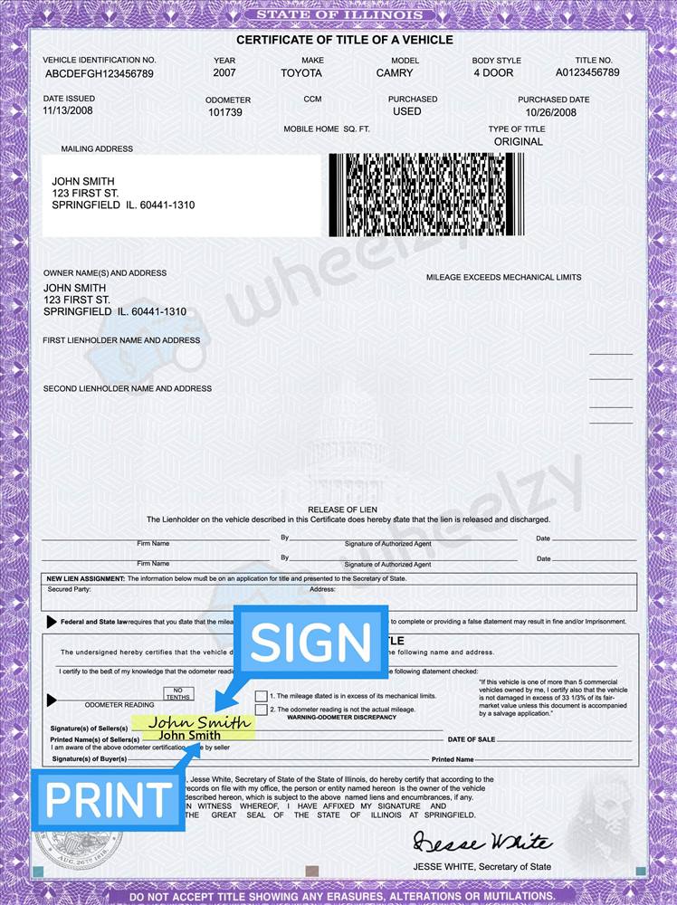 How To Sign Your Car Title In Illinois Including Dmv Title Sample