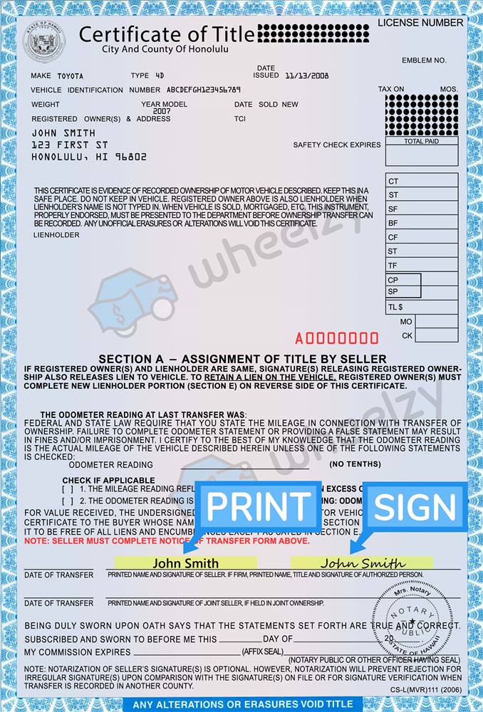 How To Sign Your Car Title In Hawaii Including Dmv Title Sample